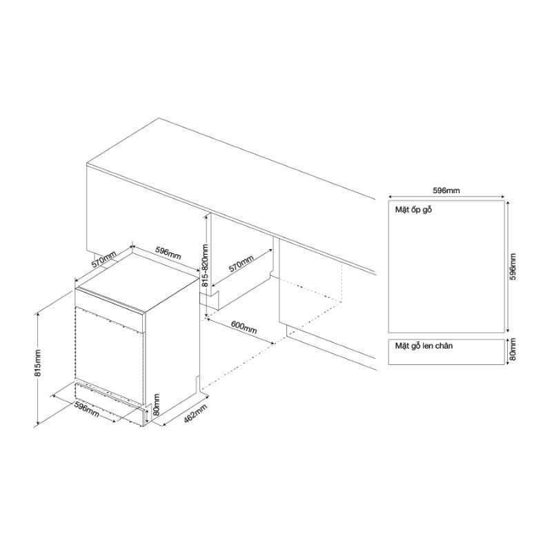 - Thiết kế bán âm tủ hiện đại: Kích thước tiêu chuẩn 60cm, dễ dàng lắp đặt vào hệ tủ bếp, mang lại không gian gọn gàng và sang trọng.