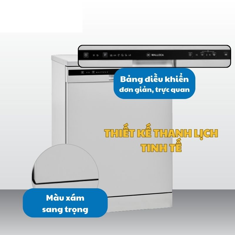 Máy rửa bát Malloca WQP125201AD là thiết bị gia dụng hiện đại, giúp tối ưu hóa việc làm sạch chén bát sau mỗi bữa ăn và tiết kiệm thời gian cho gia đình. Sản phẩm có thiết kế độc lập linh hoạt, dung tích lớn cùng nhiều công nghệ rửa tiên tiến, mang lại hiệu quả làm sạch cao và vận hành ổn định.